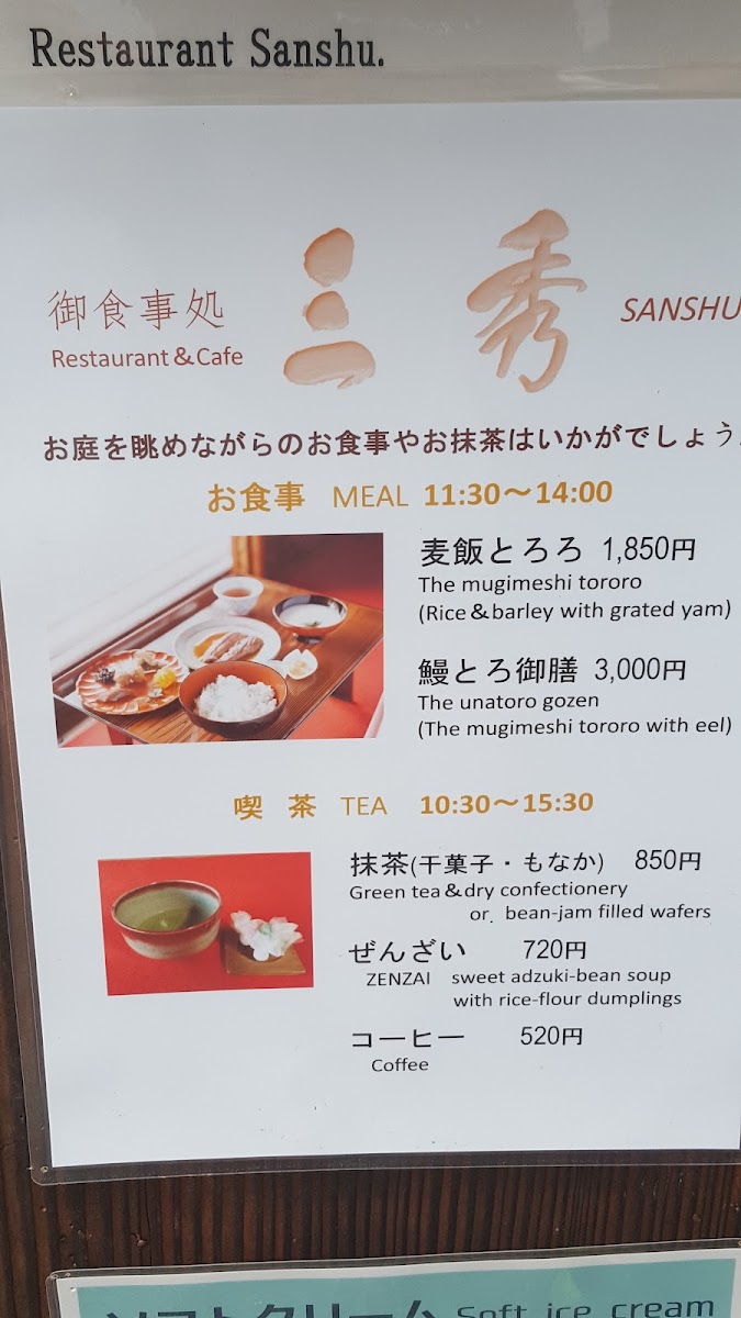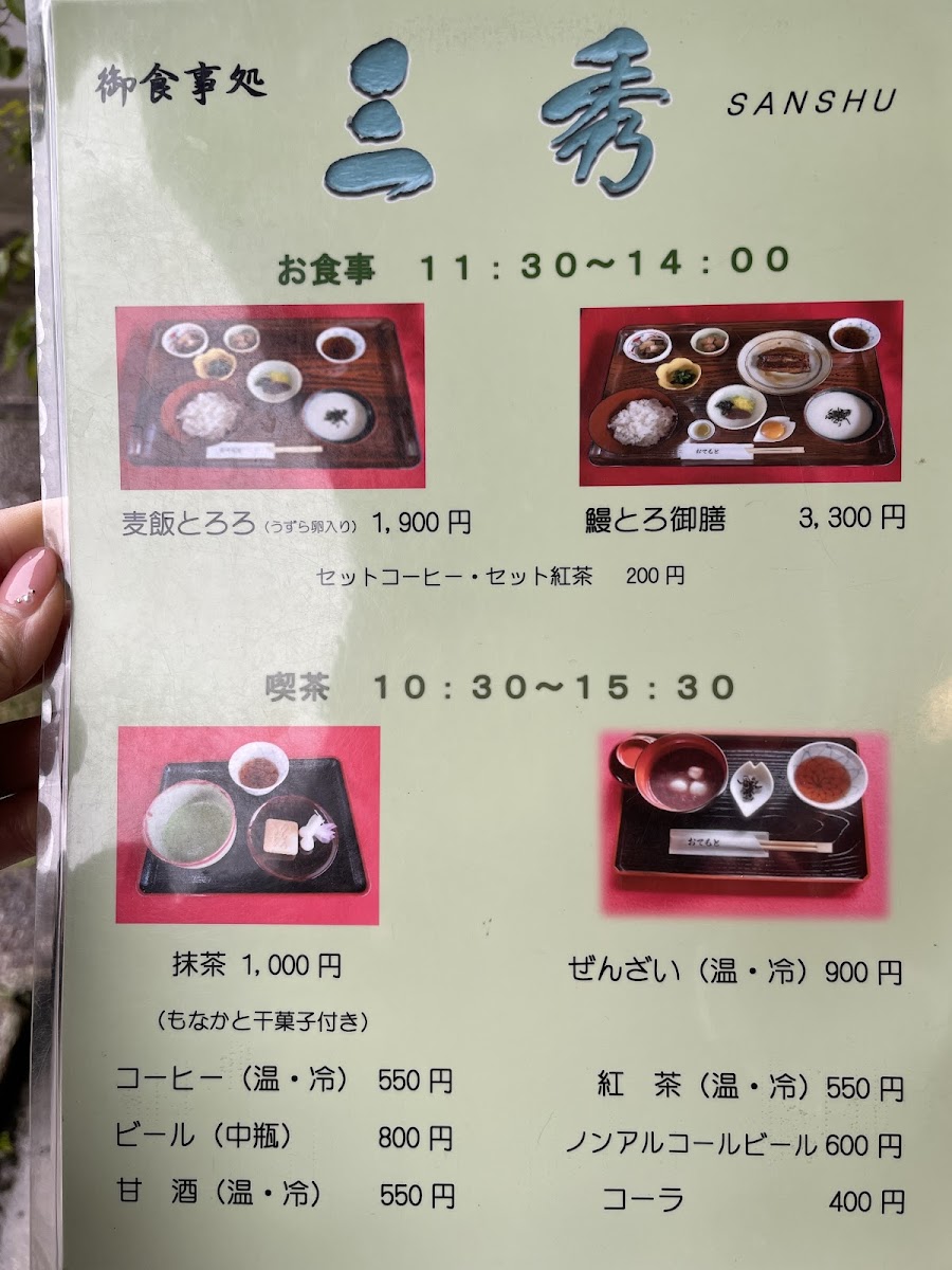 Sanshu-tei offers a thoughtfully simple menu that reflects the calm and traditional atmosphere of this historic Japanese regional restaurant. The food here is designed for moments of quiet enjoyment, whether you are taking a peaceful break after strolling through the nearby Isuien Garden or settling in for a relaxed midday meal.
